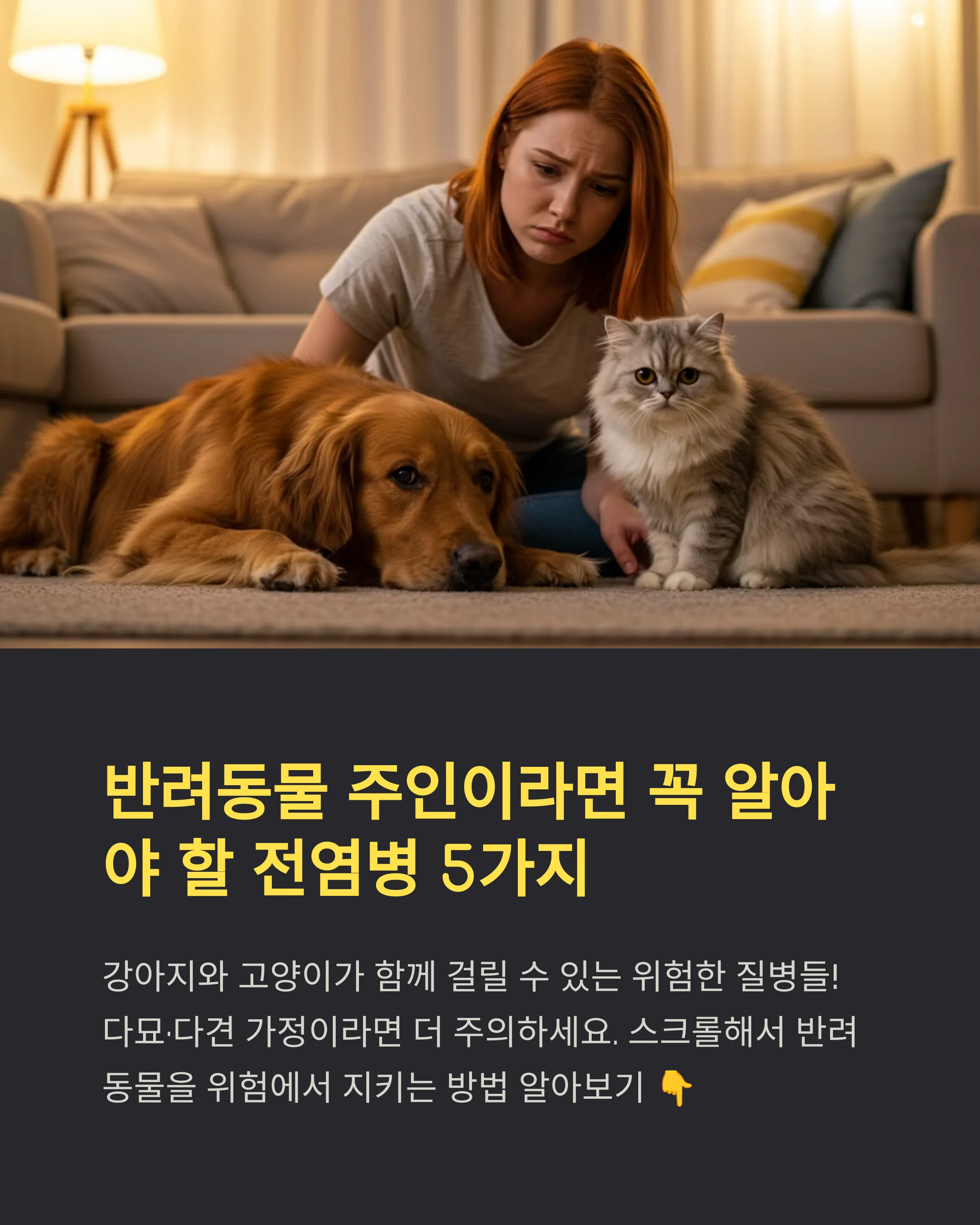 특히 다묘, 다견 가정이거나 강아지와 고양이를 함께 키우는 가정에서는 한 마리의 감염이 다른 아이에게 전파될 위험도 높아지죠. 내가 생각했을 때 이런 정보는 반려인을 위한 필수 상식이라고 느껴졌어요. 이번 글에서는 강아지와 고양이가 함께 걸릴 수 있는 전염병 중에서도 특히 주의해야 할 5가지를 중심으로 알아볼게요.