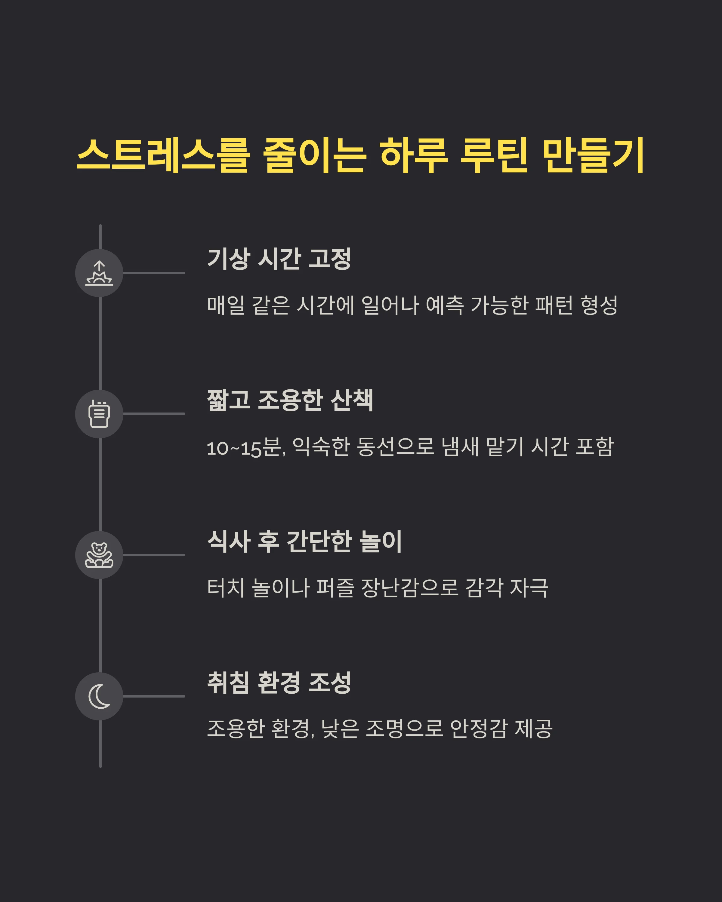 등이 그렇죠. 하지만 무조건 혼내거나 간식으로 달래는 건 오히려 역효과일 수 있어요. 노견의 불안을 줄이려면, 하루 루틴 자체를 바꿔야 해요. 오늘은 실제 보호자들이 실천 중인 스트레스 완화 루틴을 소개해볼게요.